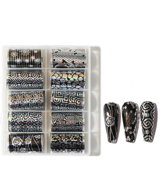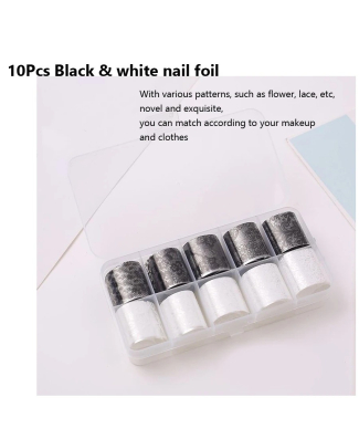 13. فويل أبيض و أسود للأظافر ١٠ قطع